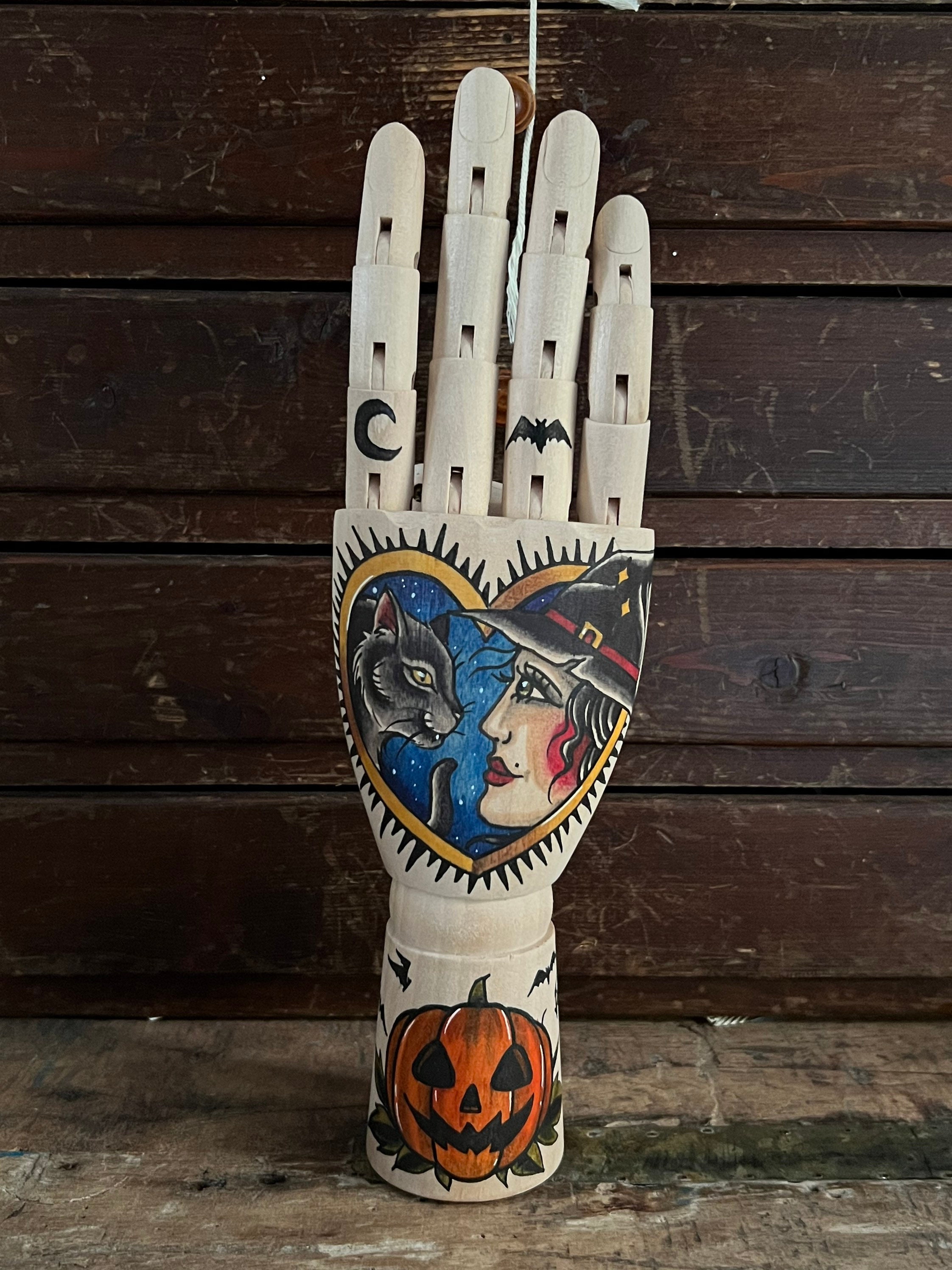 Wooden Hand With Witch And Cat Tattoo Design Etsy Uk
